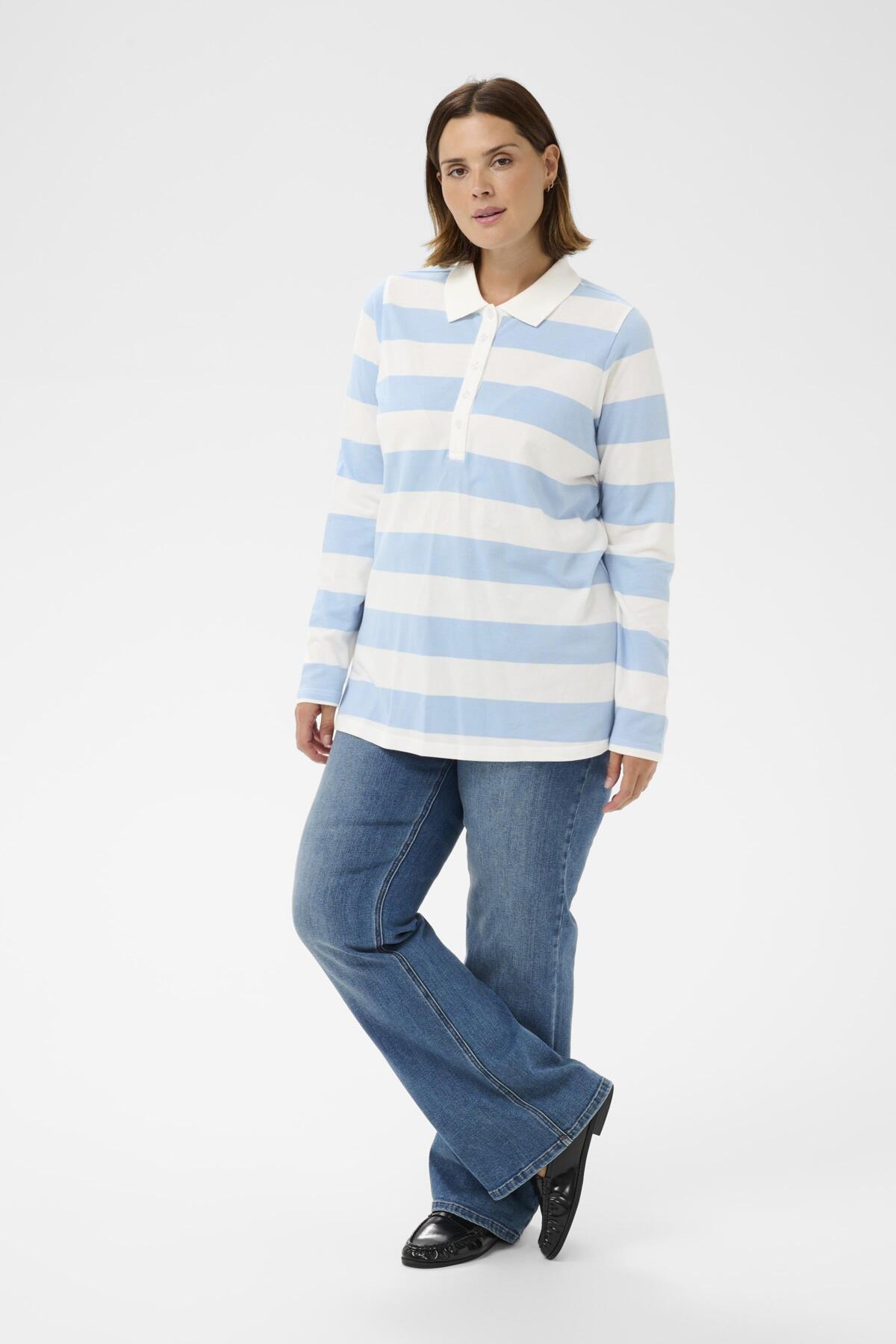 Kaffe curve POLO 10583934 Chalk With Powder Blue stripe