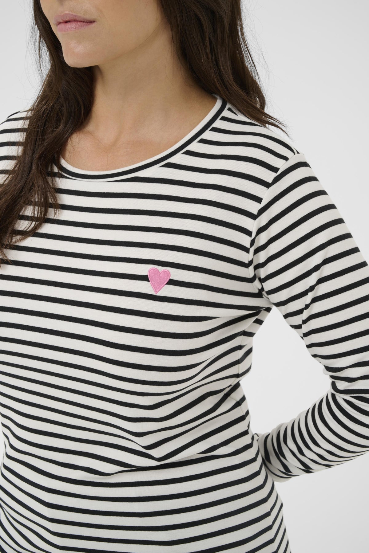 Kaffe curve T-SHIRT 10580179 Chalk/Black- Pink Heart